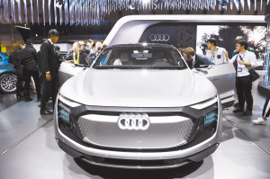 10月25日,在日本东京车展媒体预展上,人们参观一辆奥迪电动概念车。