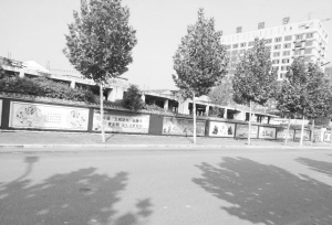 在汉阳路花卉市场门前、汉阳路与黄河路交叉口周边,不管是十字路口拐角处,还是道路沿线,空余墙体都被见缝插针设置了多处“创城”公益广告和宣传社会主义核心价值观的漫画。