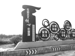 “党旗掩映下的24字社会主义核心价值观让人过目不忘,环环相连、环环紧扣,这个用圆圈叠加串联起来的铁艺公益广告造型漂亮,寓意十足!”10月24日上午,经过周口大道转盘处的市“五城联创”指挥部督导组一行发现,在文昌大道与周口大道交叉口,在吊车的帮助下,东新区的施工人员正在绿化带内设置多个落地式铁艺公益广告。新颖鲜艳的铁艺材质、镂空的雕刻造型,将公益广告立体完美地呈现在市民面前,吸引了众多路人的目光,也让市民接受润物无声式的社会主义核心价值观教育。