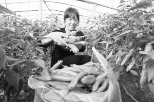 昨日,商水县化河乡姚庄村村民在采摘大棚辣椒。近年来,在精准扶贫过程中,该县积极引导农民调整产业结构,采取“公司+基地+农户”的经营模式,因地制宜发展辣椒、草莓、晚秋黄梨等特色产业,带动当地贫困户实现脱贫致富。