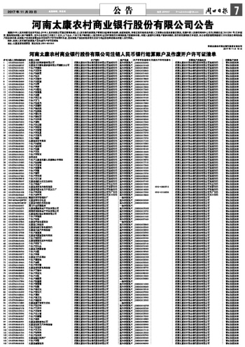 河南太康农村商业银行股份有限公司公告
