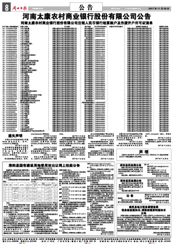 河南太康农村商业银行股份有限公司公告