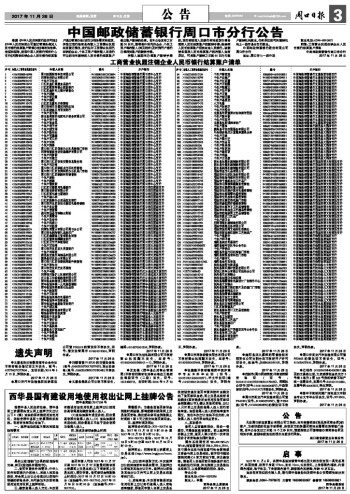 33 411691605010323 个体户戚敬 100824123440010001 中国邮政储蓄银行周口市中心支行
