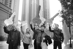 11月28日,部分回迁居民在小区内手举新房钥匙模型庆祝分得新房。当日,安徽合肥市包河区芜湖路街道太湖新村回迁小区举行安置房公开分配。1000多户回迁家庭分得新房,即将搬入配套完善的新型住宅小区。新华社发