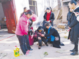 县妇联驻村工作队首先到贫困户王梅家中,妇联主席周银华对王梅说:“天气变冷了,我们来看看您老人家,给您送来棉袄、棉裤。”并亲自给她换上新衣。王梅激动地说:“我和老伴都患病,感谢你们看望我,感谢党、感谢县妇联的关心,帮我解决困难。”