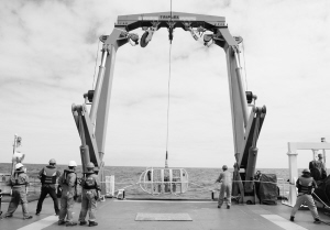 11月28日,科考队员正在布放深海光学拖体。正在执行中国首次环球海洋综合科考暨中国大洋46航次的“向阳红01”船,于西一区时间28日上午抵达南大西洋作业海区,开始第三航段科考作业。 新华社发