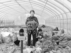 日前,沈丘县周营乡马营村无公害大棚基地的“订单”蔬菜喜获丰收。去年以来,该村党支部牵头实施“党支部+合作社+贫困户”的一体化发展模式,根据市场需求发展“订单式”无公害大棚蔬菜种植,带动当地农民脱贫致富。图为当地菜农正在收获整理蔬菜。谢辛凌 摄