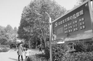 项城市城管局将人民公园打造成社会主义核心价值观主题公园,使社会主义核心价值观的内涵以更生动、更亲切的形式呈现出来。图为市民在公园内游玩。