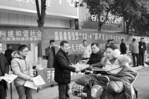 12月4日,鹿邑县司法局与县依法治县办、县普法办联合开展了以“学习贯彻党的十九大精神 维护宪法权威”为主题的法治宣传活动。 李晓明 荣华 摄