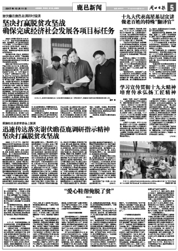 迅速传达落实谢伏瞻莅鹿调研指示精神