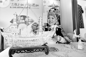 12月11日,苗族姑娘在介绍非物质文化遗产苗族银饰锻制技艺。当日,海上丝绸之路非物质文化遗产展在福建泉州举行,来自世界各国的117个项目参展。该展以“一条海上丝路 万千非遗瑰宝”为主题,是第三届海上丝绸之路国际艺术节的重要活动之一。新华社发