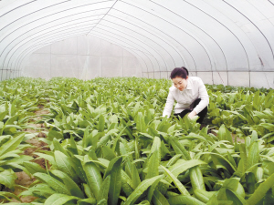 近日,在沈丘县东城办马楼村蔬菜种植基地,“菜老板”马霞正在温室大棚查看油麦菜长势。马霞介绍说,今年大棚油麦菜收益较好,亩产量约1000公斤-1500公斤,亩均收入可达5000元以上。 黄海涛 摄