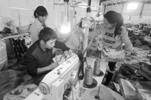 近日,商水县化河乡大刘村村民在家门口的“扶贫车间”加工出口订单。近年来,该县针对贫困户“就业难”和企业“用工难”的实际,鼓励企业在乡村建立“扶贫车间”,并为贫困户免费提供技能培训,使贫困群众在家门口就能就业致富。