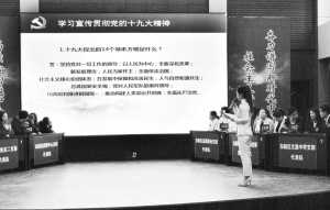 12月15日上午,东新区举办以“不忘初心 牢记使命”为主题的学习宣传贯彻党的十九大精神知识竞赛。经过激烈角逐,东新区文昌办事处党委代表队取得第二名的好成绩。图为知识竞赛现场。