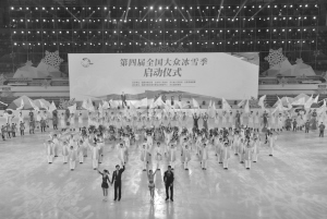 第四届“全国大众冰雪季”举行启动仪式 12月16日,由国家体育总局、北京市人民政府、河北省人民政府和北京冬奥组委共同主办的第四届全国大众冰雪季在河北省石家庄市举行启动仪式。 图为启动仪式现场(12月16日摄)。