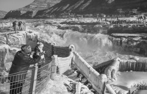 壶口瀑布:冰挂与彩虹交相辉映