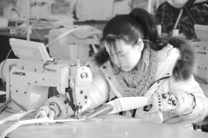 项城市在脱贫攻坚工作中,紧贴实际,因地制宜,将技术能力脱贫放在首位,收到良好效果。图为项城市职业中专贫困学生正在缝制书包。该校采取“订单脱贫”计划,在实践课上,让学生既学到技术,又获得收益。