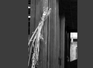 村民们采艾回到家,把艾草洗干净,扎成小把,拴上红布条,挂在门两边,挂在厅堂前,挂在院子里,挂在大树上……黄村里,家家户户飘浮着浓郁的艾草香……