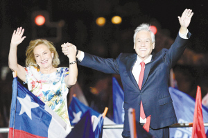 12月17日,在智利首都圣地亚哥,当选总统皮涅拉(右)向人们挥手致意。当日,智利总统选举第二轮投票结束,前总统塞瓦斯蒂安·皮涅拉获得54.57%的选票,当选下任智利总统。