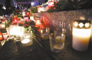 12月19日,德国柏林举行圣诞市场恐袭一周年纪念活动。2016年12月19日晚,一辆货车冲进柏林布赖特沙伊德广场圣诞市场的人行道,造成12人死亡、49人受伤。
