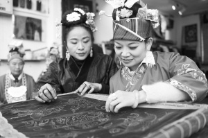 12月24日,在贵州省台江县一商铺,妇女们在交流苗绣技艺。近年来,贵州省黔东南苗族侗族自治州台江县通过“互联网+企业+农户”的模式促进农村妇女增收。该县积极联系电商平台、各大企业和本地合作社,打通销售渠道,灵活计算薪酬,帮助广大绣娘在冬闲时节实现家门口增收。 新华社发