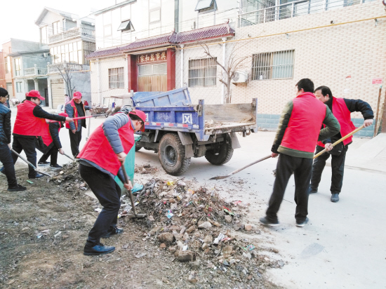 区财政局包村工作队清理村内垃圾。理效明韩菁