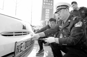 在河北省邢台市公安局车辆管理所,工作人员为车主张女士安装新能源汽车号牌(12月25日摄)。 公安部交管局统计显示,截至2017年12月28日,全国已有107个城市启用新能源汽车专用号牌,覆盖31个省(自治区、直辖市),已发放新能源汽车专用号牌26.57万副。新华社发