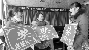 近日,在淮阳白楼镇“孝顺媳妇”“文明家庭”表彰大会上,3名受表彰的孝顺媳妇高兴得合不拢嘴。当天,共有46名“孝顺媳妇”和23个“文明家庭”受到隆重表彰。