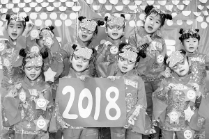 2017年12月31日,在山东青岛即墨市通济新经济区一家幼儿园内,小朋友们身着节日服装,迎接2018年的到来。