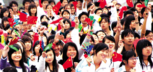 今天是国庆节。昨天,周口街头用鲜花组成的“欢度国庆”图案格外抢眼(上图),人们手拿国旗喜迎国庆59周年(下图)。