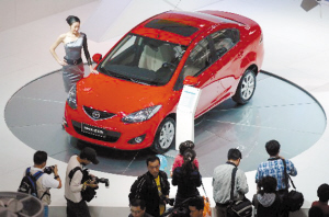 10月8日,参观者在展会上观看一款新推出的车型。当日,为期5天的2008南京国际汽车展览会在南京国际展览中心开幕。本届车展的展览面积达到7万平方米,来自国内外53个整车品牌的近400辆乘用车参展,10多个品牌在展会现场推出新款车型,众多经济环保小排量车型也在车展上争相亮相。
