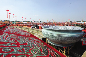 10月12日,青铜文化博览会展出著名出土青铜器“春秋鉴”的仿制品。当日,中国(铜陵)青铜文化博览会在安徽省铜陵市开幕。有着“中国古铜都、现代铜基地”之誉的铜陵市自古就是铜金属开采和冶炼的重要基地。