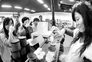 10月12日,在一家台湾茶叶展商展台,工作人员为参观者沏茶。 当日,为期4天的第五届中国国际茶业博览会在北京开幕,吸引了来自海内外的众多参展商,参展内容涵盖茶叶生产、加工、包装、流通等环节。