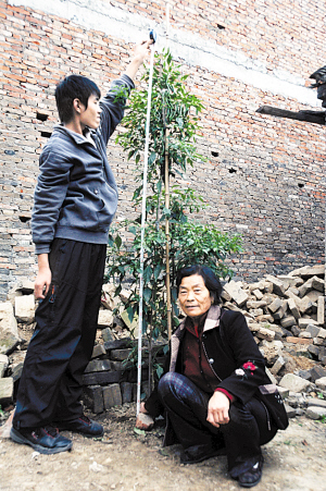当日,记者闻讯来到王耀民家,只见这棵辣椒高高挺立在菜园的一角,如小树一般,枝头挂满了红绿相间的果实,煞是好看。它到底有多高呢?王耀民的老伴赵老太拿出卷尺,在孙子的帮助下,现场一量,发现它的“身高”竟达2.2米!而普通辣椒一般高1米左右。