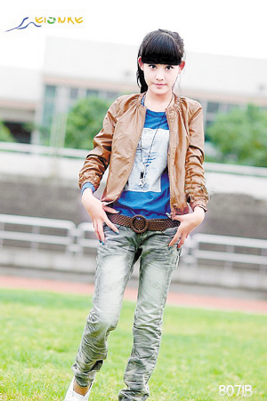 蓝色的长T恤衫,帅气的牛仔裤,再配上咖啡色的外套,能不吸引眼球吗?