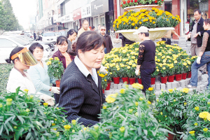 园林工人正在摆放花台。随着老子文化节的临近,市园林处工作人员昨日起在市区主要干道摆放各式鲜花。据了解,这项工作18日以前完成,预计将使用鲜花数十万盆。