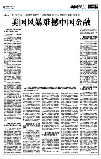 美国风暴难撼中国金融