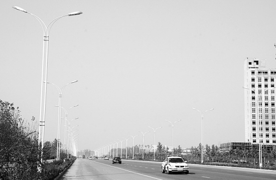 昨天,在市区东环路上,崭新的路灯整齐地“站”在马路两侧。据了解,东环路大桥以北的东环路段加宽改造基本结束,这里已成东新区的一个亮点。 晚报记者 朱海龙 摄