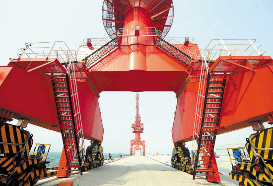 这是10月13日拍摄的首钢京唐钢铁厂成品码头。经过3年的建设,位于河北曹妃甸的首钢京唐钢铁联合有限责任公司钢铁厂目前已初具规模,将在2008年底前开始投产,形成485万吨的生产能力。首钢京唐钢铁项目是纳入国家“十一五”规划纲要的重点项目,是首钢搬迁调整的重要载体工程。新华社发