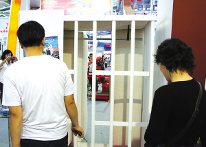 10月14日,两名参观者驻足了解“抗震护身空间”。在第十届高交会的“抗震减灾科技专场”中,一个白色的钢制衣柜吸引了不少参观者。据介绍,这种“抗震护身空间”平时可用来储放衣物,当地震等自然灾害来临时,可摇身变成小型“避难所”,为使用者提供生命安全保障。 新华社发