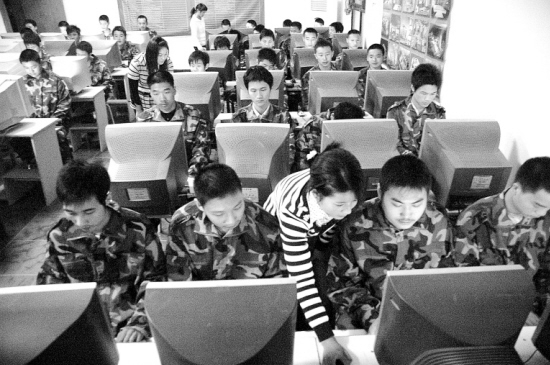 昨日,预征对象在接受计算机技术培训。为提高兵员素质,树立“周口兵”品牌,项城市主动组织396名预征对象进行役前技能培训。通过这种有效的形式,吸引了大批高学历、高素质青年准备参军入伍。 晚报记者 朱 虹 通讯员 段向阳 摄