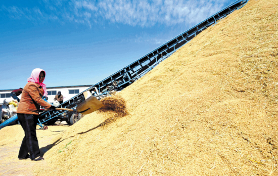 10月20日,国家统计局新闻发言人李晓超说,我国秋粮再获丰收已成定局,粮食总产预计将创新的历史记录,连续5年增产。 宁夏银川市贺兰县金贵镇农民在粮食收购点整理秋粮(10月9日摄)。 新华社记者 王鹏 摄