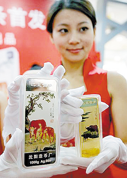 10月21日,工作人员展示牛年贺岁彩色金银条单品。 当日,沈阳造币厂牛年贺岁彩色金银条在北京工美大厦发售。这一系列产品分为金条单品、银条单品、金条套装、银条套装、金银条套装五大类别,金银条正面图案为姿态各异的生肖牛图案,背面为吉祥祝福语。 新华社发