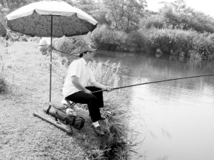 老爸退休后,迷上了钓鱼,撑着一把钓鱼伞,人往折叠椅上一坐,就可以在河边、塘畔钓上一整天。