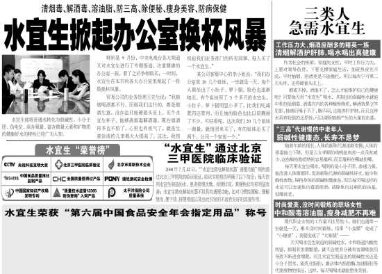 郑重提醒:当前市场上,出现诸多打着水宜生旗号的假冒、仿制、伪劣产品在个别药店、保健品店及商场保健品专柜低价违法销售,严重侵害消费者利益。为了维护您的合法权益,请到正规授权网点咨询购买。使用假产品对您的身体所造成的后果,我公司概不负责。同时,发现假货后消费者请到工商部门举报。