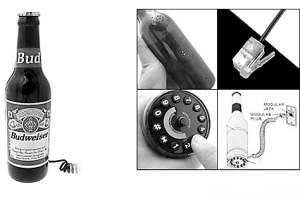 “啤酒瓶”电话的通话麦克以及听筒被放置在了瓶子的内部,外部只能看到网孔。而在瓶子的底部则伸出了一根电话线,可以插到家中的电话数据插槽中。不过喜欢喝啤酒的朋友们注意了,这个“啤酒瓶”的盖子是固定在瓶子上的,酒瘾犯了可千万不要拿牙咬。该“啤酒瓶”电话的售价约为12美元(折合人民币84元左右)。(任民)