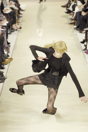“你要上场的每一套设计师都会安排好,一般春夏秀场很少配袜子,穿着袜子加凉鞋会非常滑,我也很害怕,显得脚和鞋子的尺寸完全不合,后跟容易滑落。”模特沈丽丽这样解释,“其实最难走的高跟鞋是前面薄底,后跟很高,这样脚会形成一个很不自然的弧度,连腿都会伸不直,若前面是相应的厚跟,走路不难。”