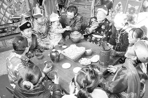 额济纳旗边防武警在牧民家中走访(10月30日摄)。“草原110”成立10年来,内蒙古自治区公安边防总队针对辖区面积大、边境线长、牧民居住分散等特点,不断创新“警务前移、警力下沉”工作机制,派出干警与牧民同劳动、同娱乐、同防范,有效地维护了边境地区的社会治安稳定。今年前10个月,内蒙古边防辖区治安和刑事案件同比分别下降56%和25%。 新华社记者 周宁 摄