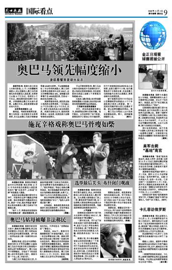 奥巴马领先幅度缩小
