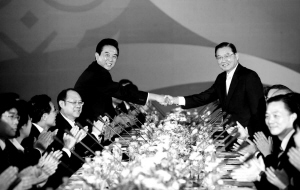 陈云林指出,近半年多来,两岸双方都抓住难得的历史机遇,作出了各自的努力,推动两岸关系步入和平发展的轨道。海协会与海基会恢复商谈,两岸周末包机和大陆居民赴台旅游顺利实施,谱写了两岸交流合作的新篇章。双方各自采取措施加强两岸投资和贸易、扩大“小三通”的功能与作用,为促进两岸人员往来和经济合作提供了更多便利。两岸关系的改善与发展,受到两岸同胞和国际社会高度评价。